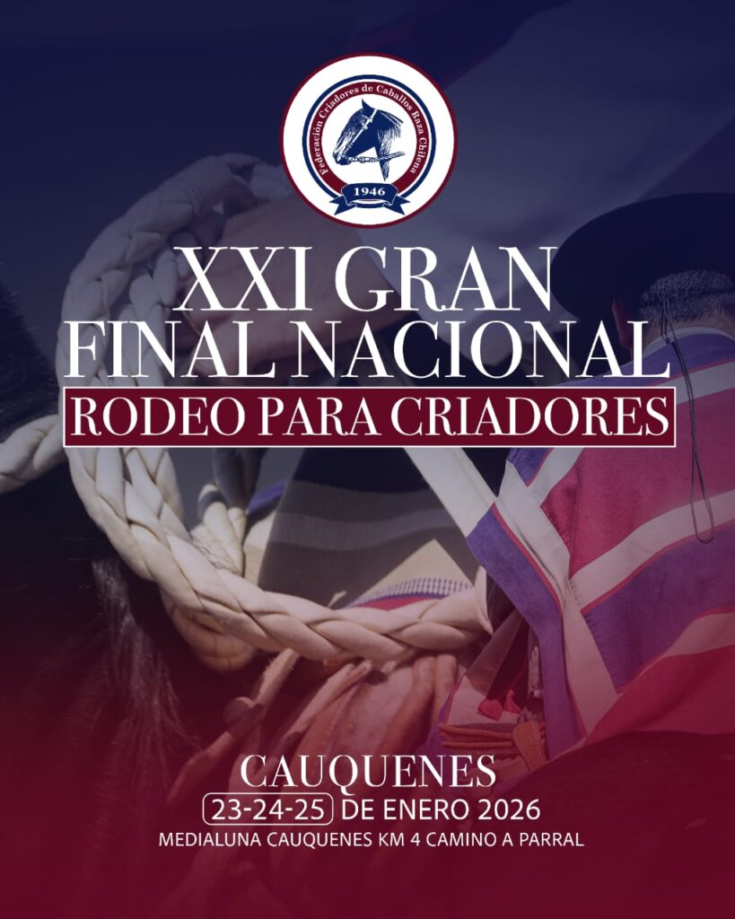 Lo último Impecable la Medialuna de Cauquenes en la Final de Rodeo para Criadores Marcela Medina Adán enero 16, 2026 1 minute read La Final de Rodeo para Criadores, temporada 2025–2026, se realizará los días 23, 24 y 25 de enero de 2026, en la Medialuna de Cauquenes, bajo la organización de la Asociación de Criadores de Caballos Raza Chilena de Cauquenes. Acerca del autor Marcela Medina Adán Administrator Visitar el sitio web Ver todas las entradas Navegación de entradas Anterior: SE VIENE EL 62 ENCUENTRO BINACIONAL CHILENO – ARGENTΙΝΟ 2026!Siguiente: COMUNICADO DE PRENSA LOS HUASOS CORREN POR CHILE Historias relacionadas 1 minute read Lo último Duao vive su XVI Campeonato Nacional de Rodeo de la Red SNA Educa Marcela Medina Adán abril 15, 2026 0 3 minutes read Lo último Cacerola y Normando: Campeones de la Expo Cauquenes Marcela Medina Adán abril 15, 2026 0 1 minute read Lo último En recuperación Pablo Ibáñez Vidal Marcela Medina Adán abril 15, 2026 0